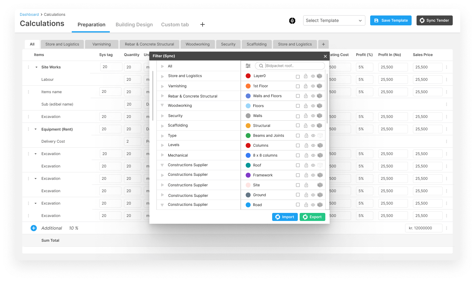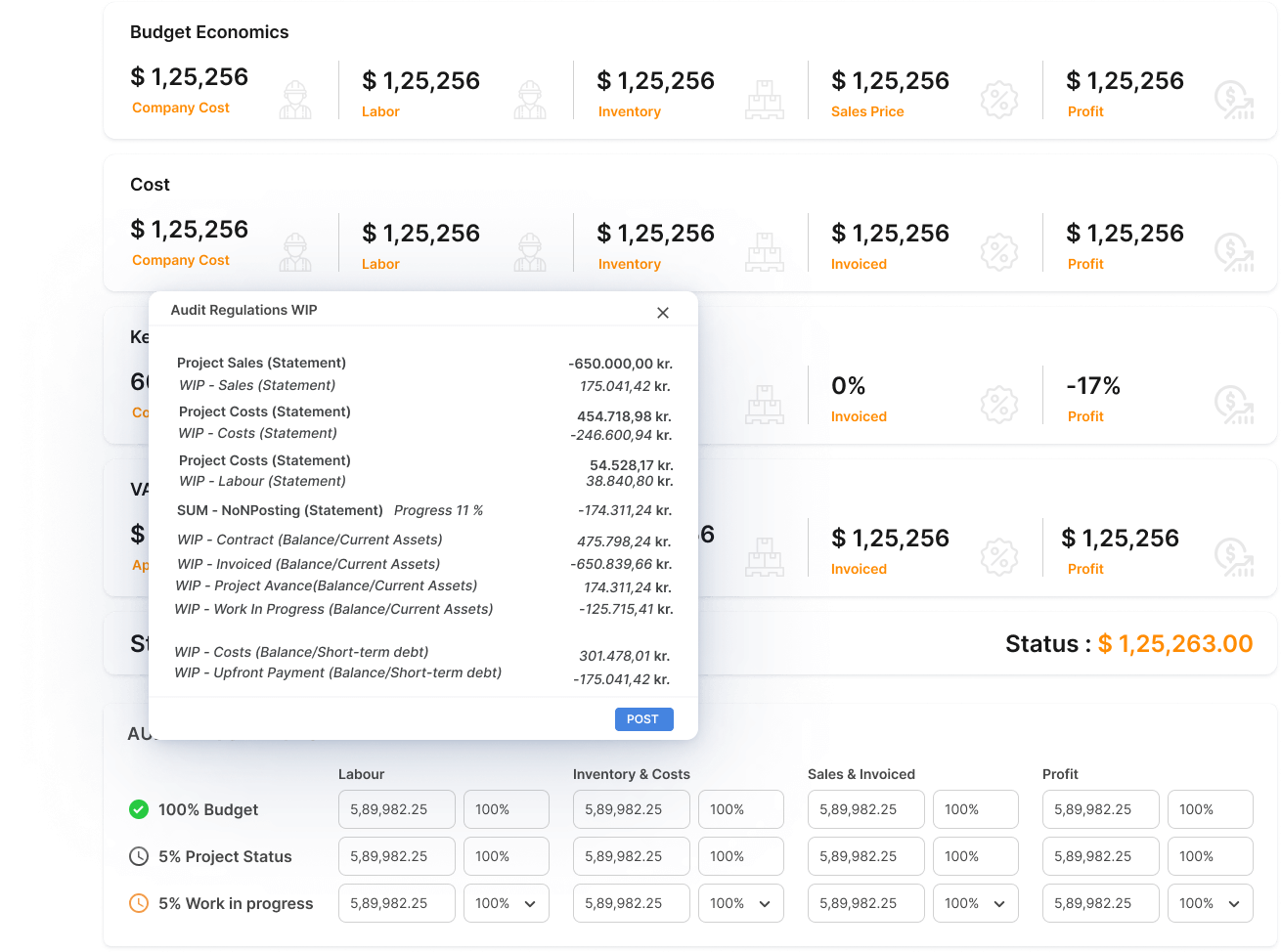Using your company’s own data, the system automatically calculates the financial consequences of project delays and contract changes. This means that you always have an overview of the financial situation across all projects and can avoid incorrect forecasts and calculations.