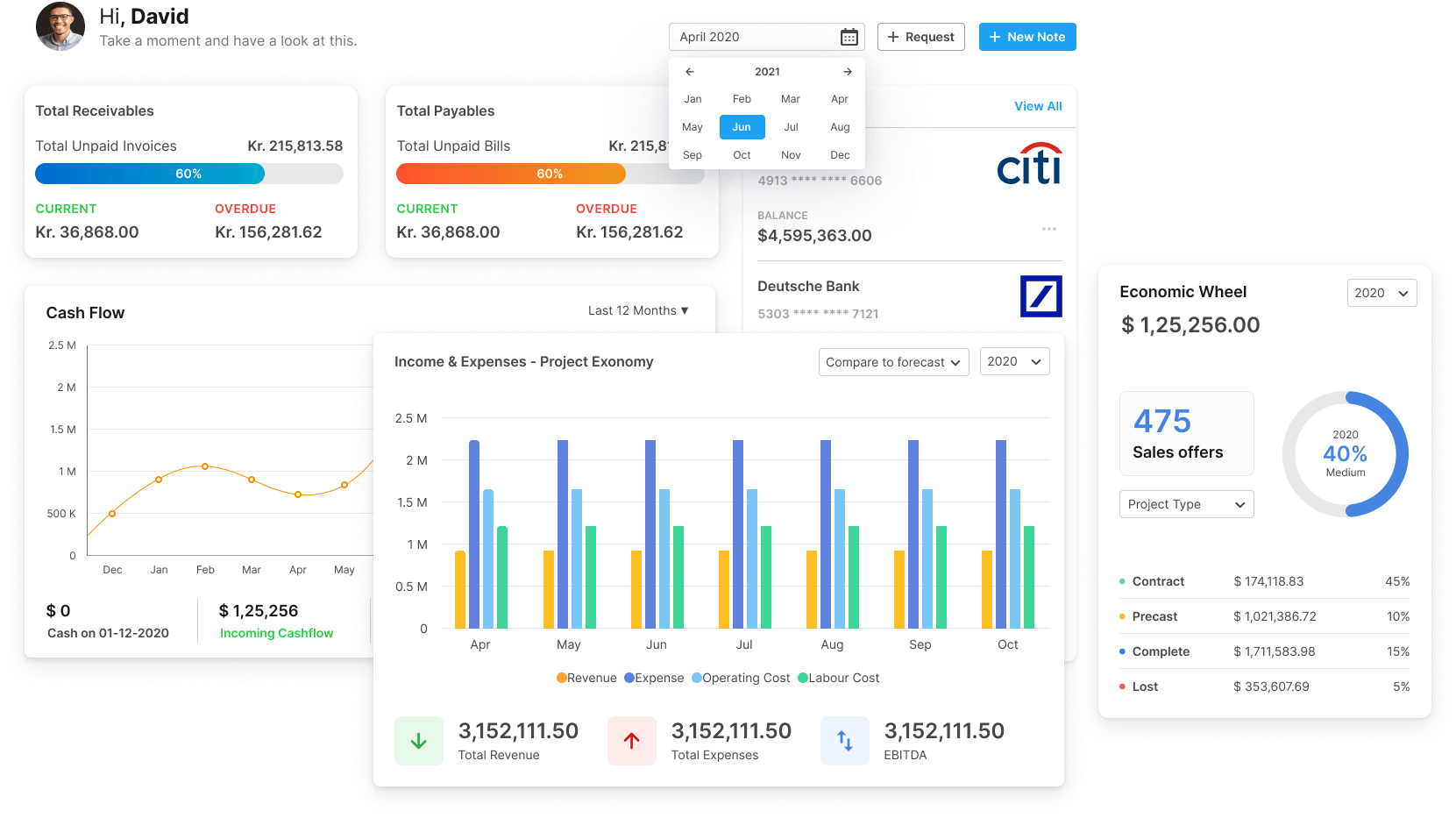 Maintain an overview of company finances and all projects, down to the smallest detail.