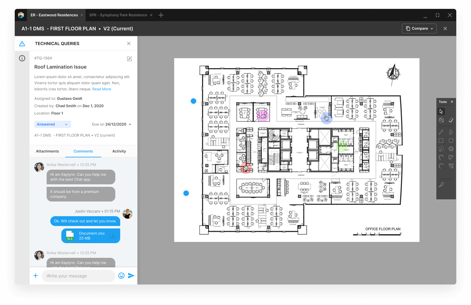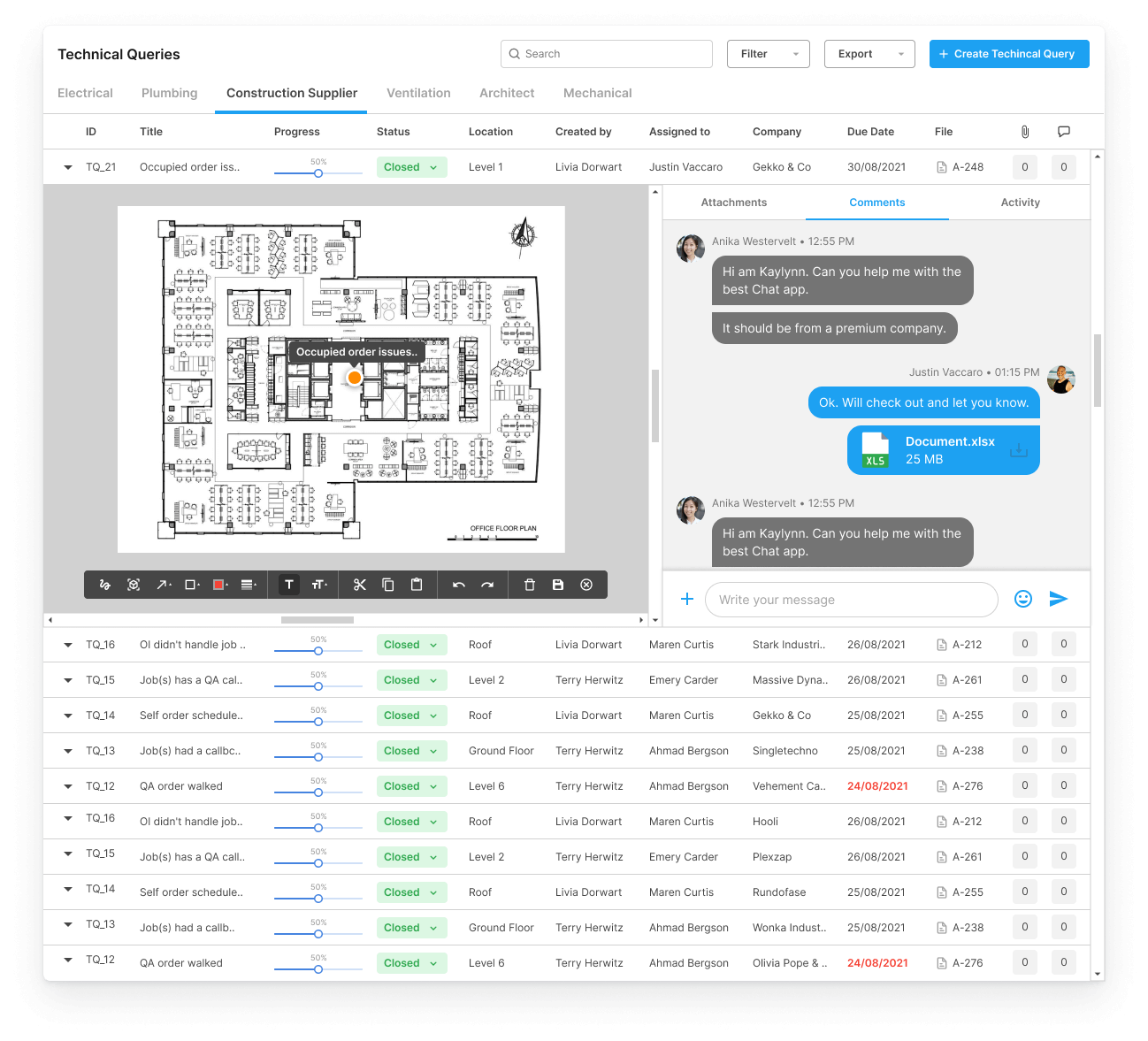 Communicate with colleagues and other individuals, share project files, and discuss progress online.