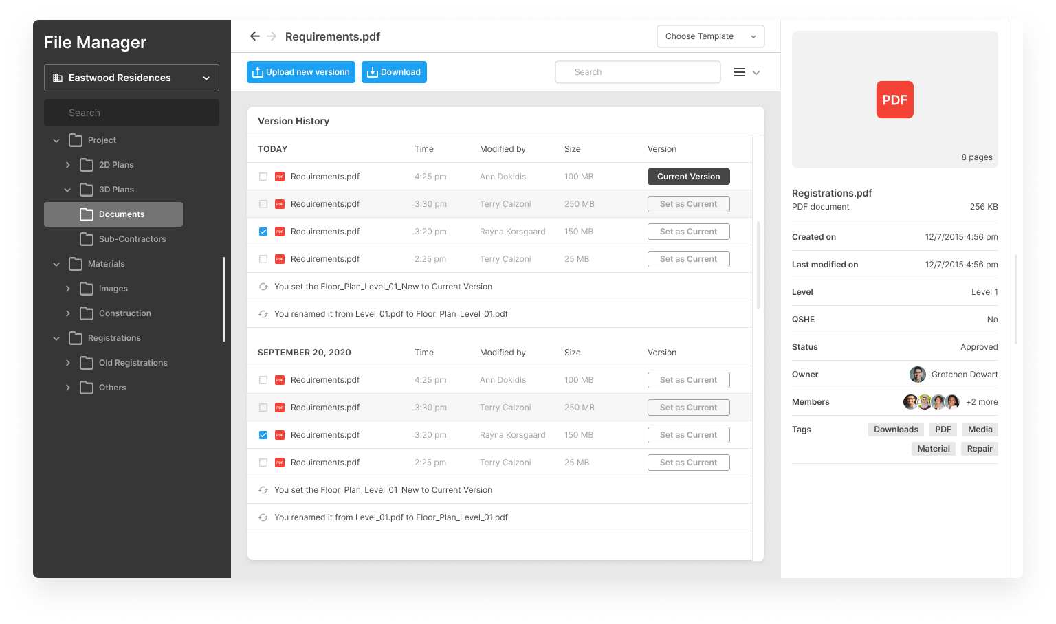 Managing files and file versions in CloudES is safe and easy with the file managing system.