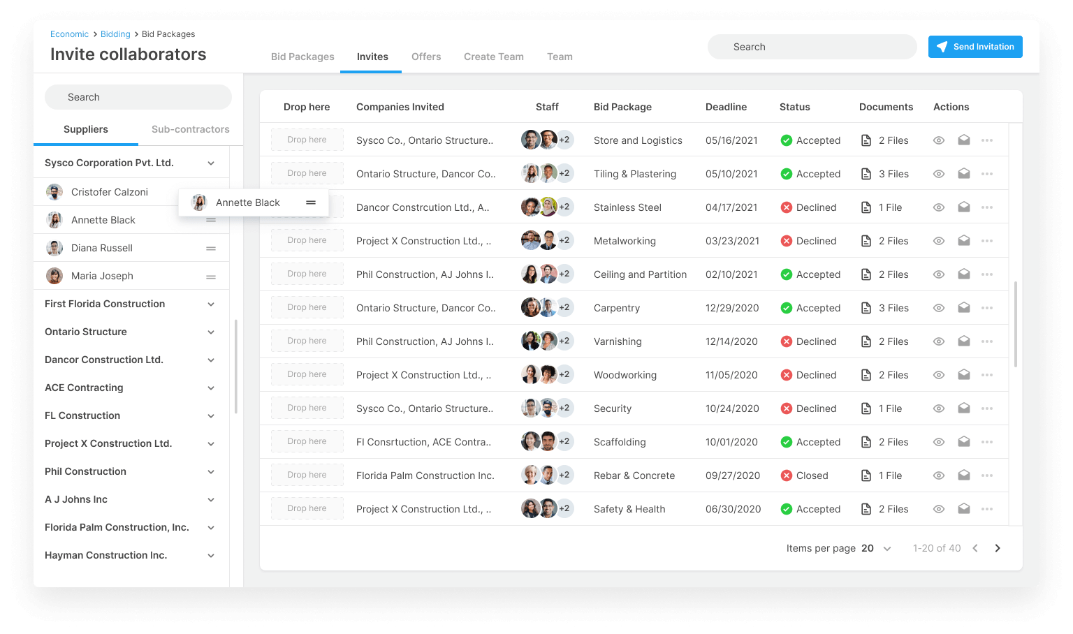CloudES makes it easy to track supplier progress and management tasks related to suppliers.