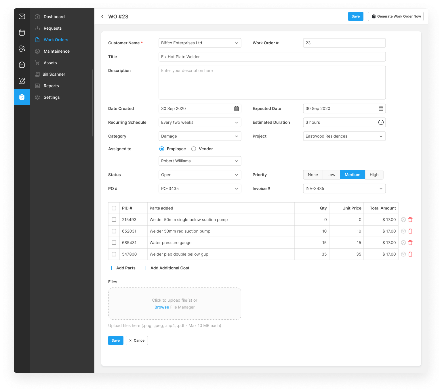 Monitor day-to-day running in Facility Management with CloudES. Create work orders, upload files, plan ressources, handle invoices, deal with technical queries, keep track of maintenance plans, and much more.